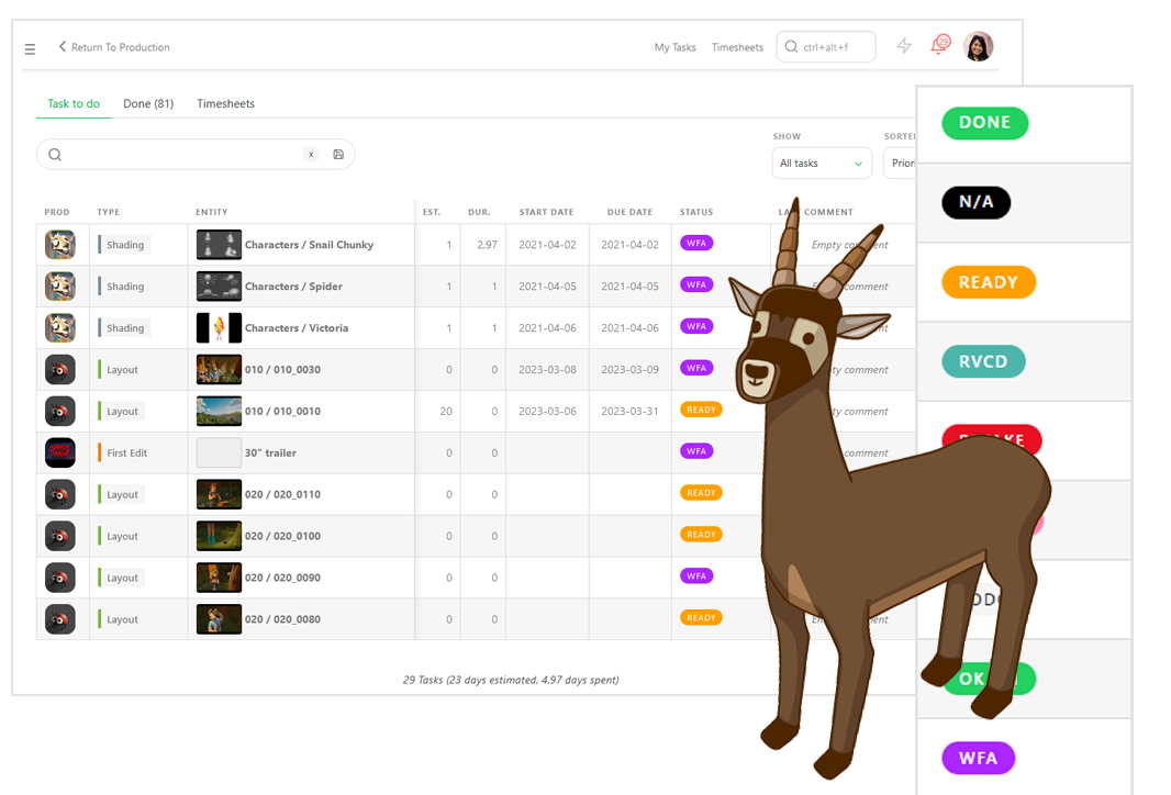 Kitsu saves time and increases efficiency. Once integrated into your pipeline, it supercharges your studio. Managing productions is easier than ever!